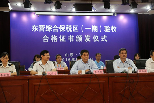 9月26日上午,東營(yíng)綜合保稅區(qū)(一期)正式通過(guò)由中國(guó)海關(guān)總署牽頭、國(guó)家十部委組成的國(guó)務(wù)院聯(lián)合驗(yàn)收組的驗(yàn)收,并獲頒驗(yàn)收合格證書(shū)。 在驗(yàn)收會(huì)議上,國(guó)務(wù)院聯(lián)合驗(yàn)收組聽(tīng)取了東營(yíng)綜合保稅區(qū)(一期)規(guī)劃建設(shè)...